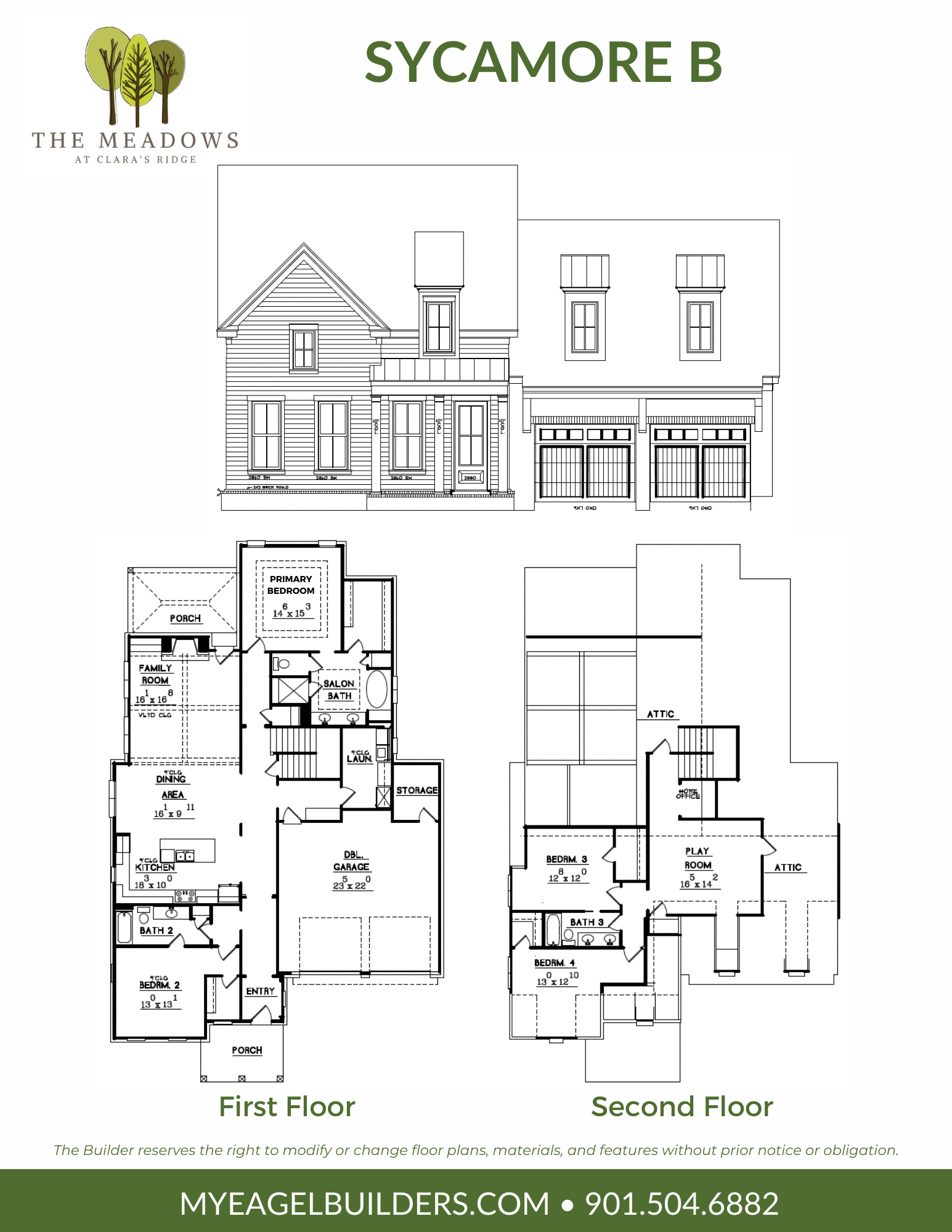 This house is our Sycamore B floor plan. Featuring 4 bedrooms, 3 bathrooms and a bonus room. Primary bedroom and 2nd bedroom downstairs.