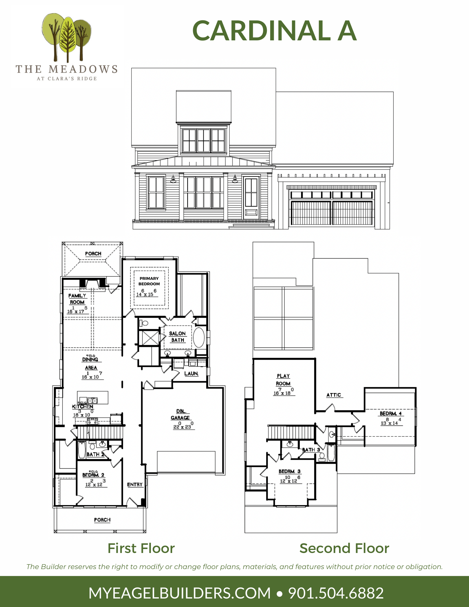 This house is our Cardinal A floor plan. Featuring 4 bedrooms, 3 bathrooms and a bonus room. Primary bedroom and 2nd bedroom downstairs.