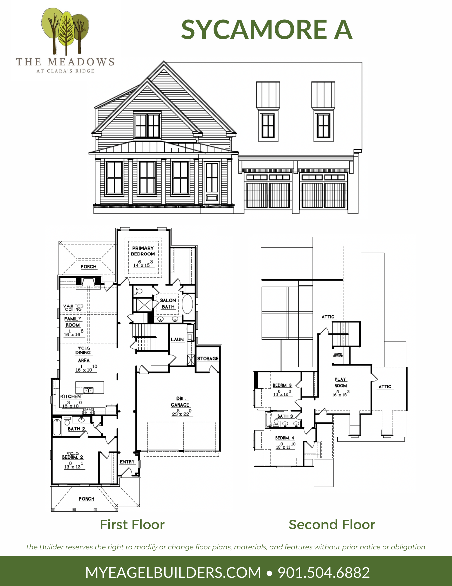 This house is our Sycamore A floor plan. Featuring 4 bedrooms, 3 bathrooms and a bonus room. Primary bedroom and 2nd bedroom downstairs.