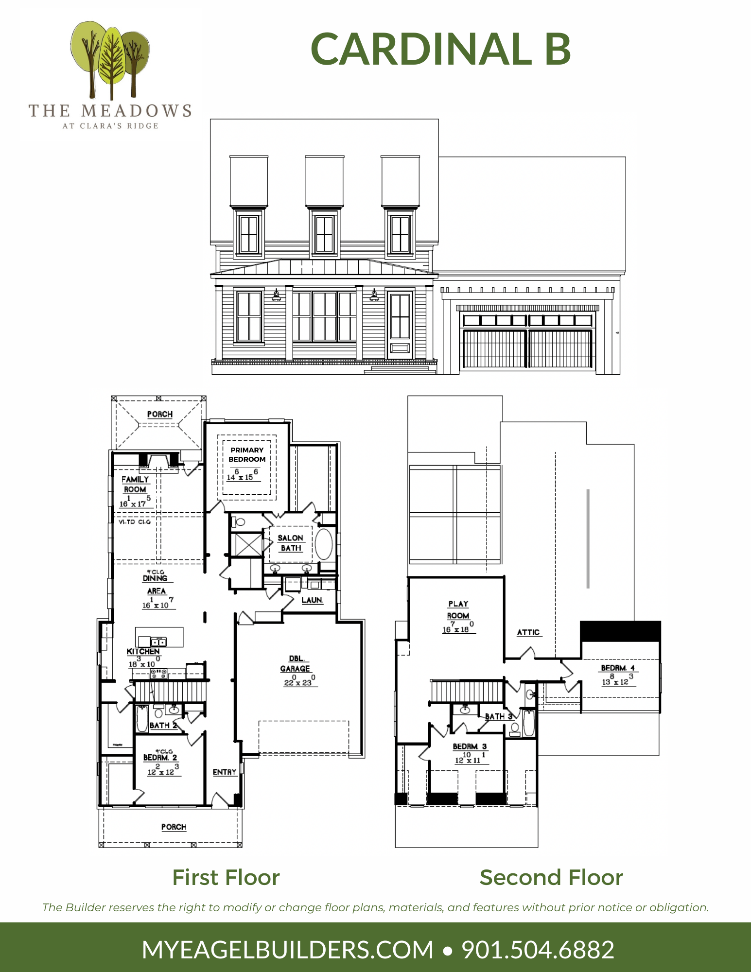 This house is our Cardinal B floor plan. Featuring 4 bedrooms, 3 bathrooms and a bonus room. Primary bedroom and 2nd bedroom downstairs.