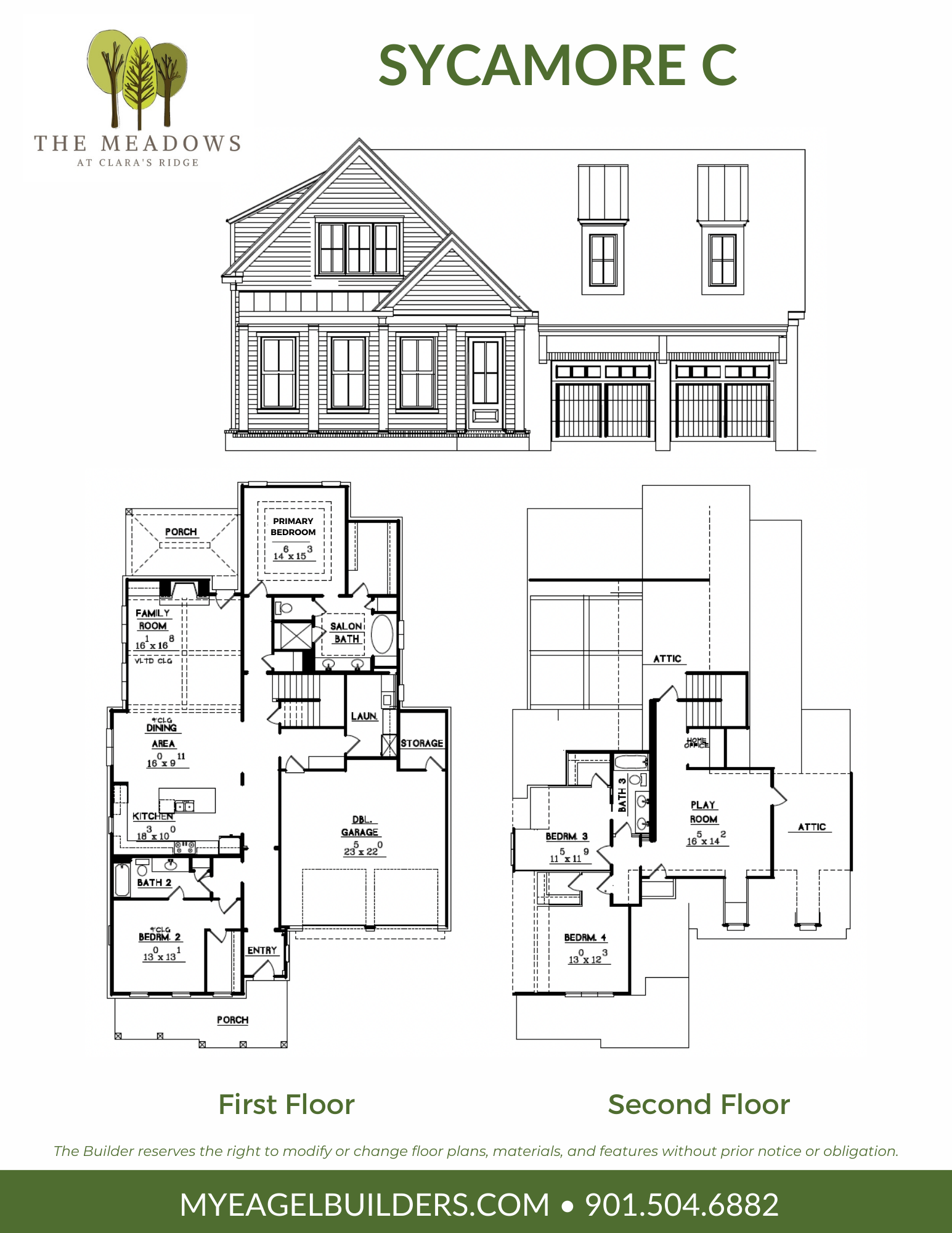This house is our Sycamore C floor plan. Featuring 4 bedrooms, 3 bathrooms and a bonus room. Primary bedroom and 2nd bedroom downstairs.